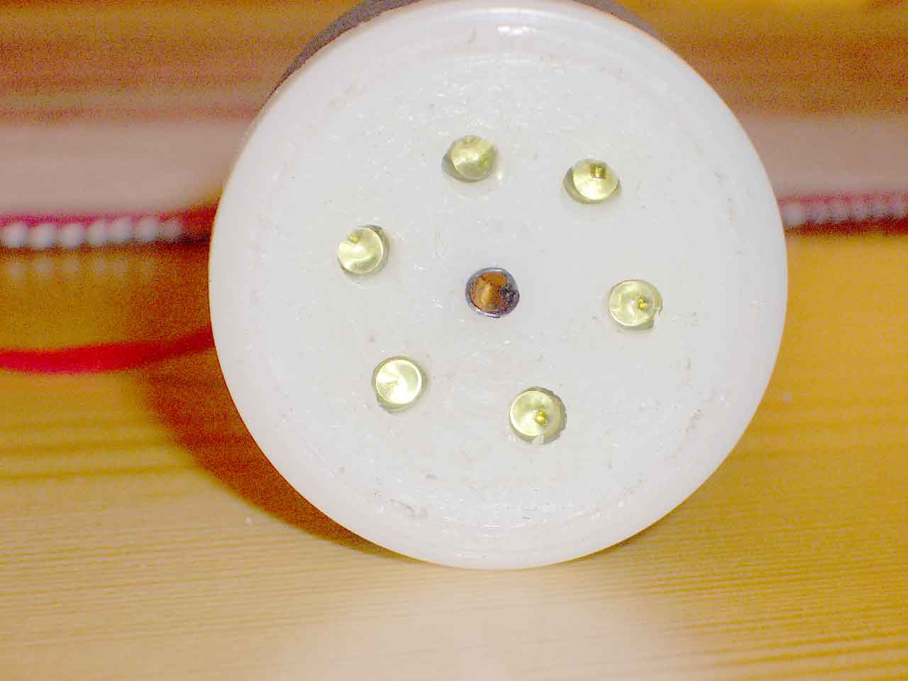 I centrum av spolen sitter en hylsa med 6 st IR-dioder och en mottagardel i mitten |