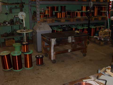 Interiörbild från firman som lindade spolen med koppartråd |