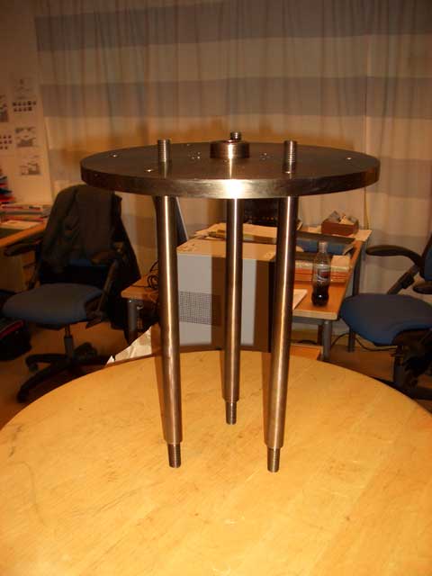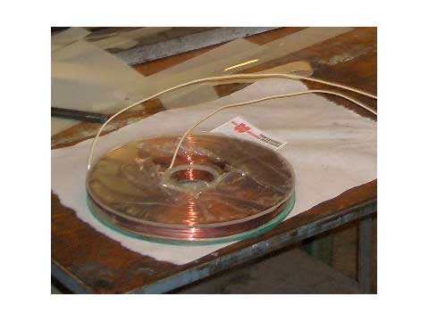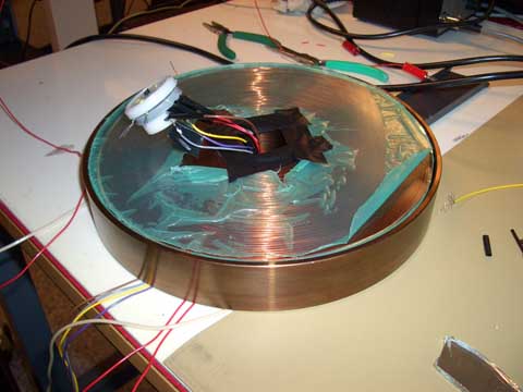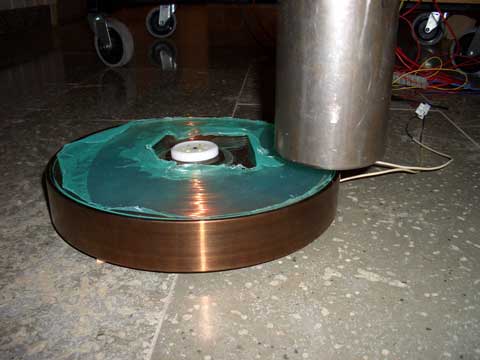 Bottenplattan med spolen monterad i mitten |